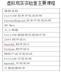 根据人才培养方案,为了满足教学需求,现对大数据学院虚拟现实实验室建设进行招标,其主要课程如下: