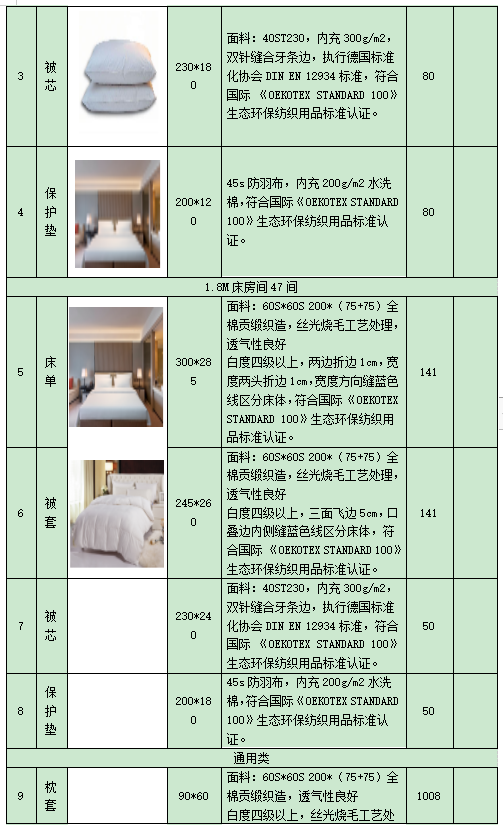 2、应标单位需提供相应的符合国际《OEKOTEX STANDARD 100》生态环保纺织用品标准认证的相关证明文件,保证提供的商品符合要求。