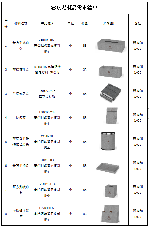 3、标书要求一正两副必须单独档案袋盖章密封。根据(附表一)(附表二)标底文件资料分别投递标书文件:客房布草一个标书文件;易耗品一个标书文件。