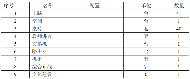 新建实验室,除购置上表所需设备外,还需配备电子班牌1个、门禁电源2个、磁力锁2个、出门开关2个。