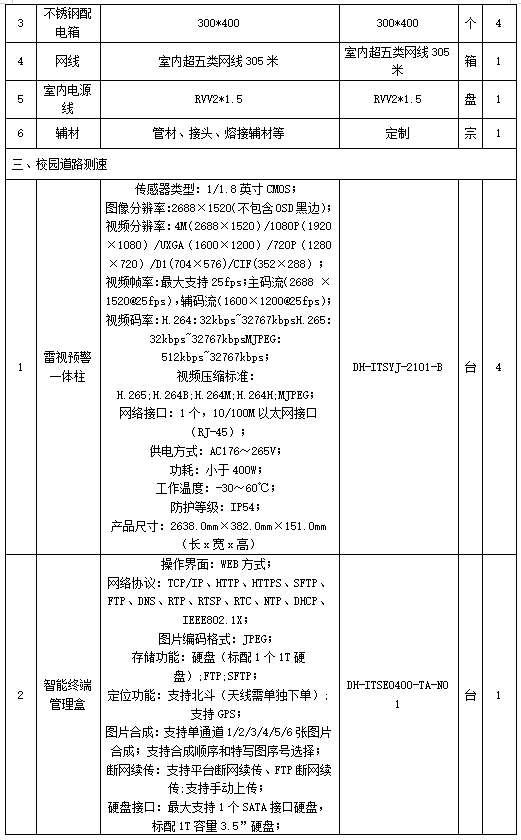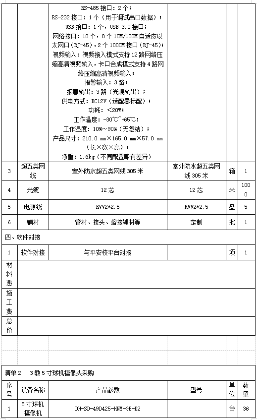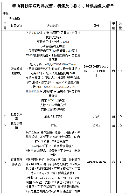 (二)项目名称:2023年泰山科技学院周界报警、测速及3教5寸球机摄像头