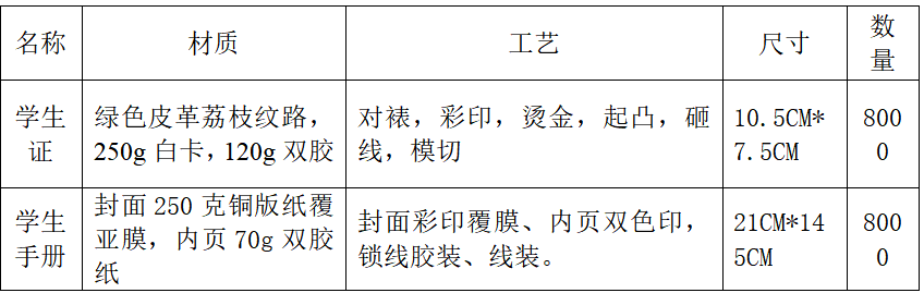 (二)项目名称:2024年泰山科技学院学生证及学生手册制作
