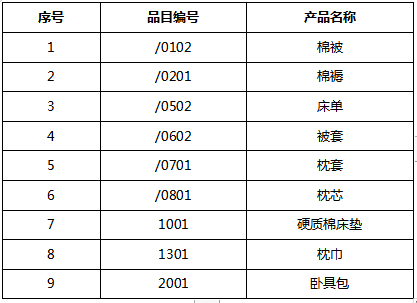 床上用品项目名称:
