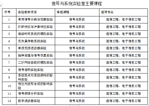 根据人才培养方案,为了满足教学需求,现对通信工程学院信号与系统实验室建设进行招标,其主要课程如下: