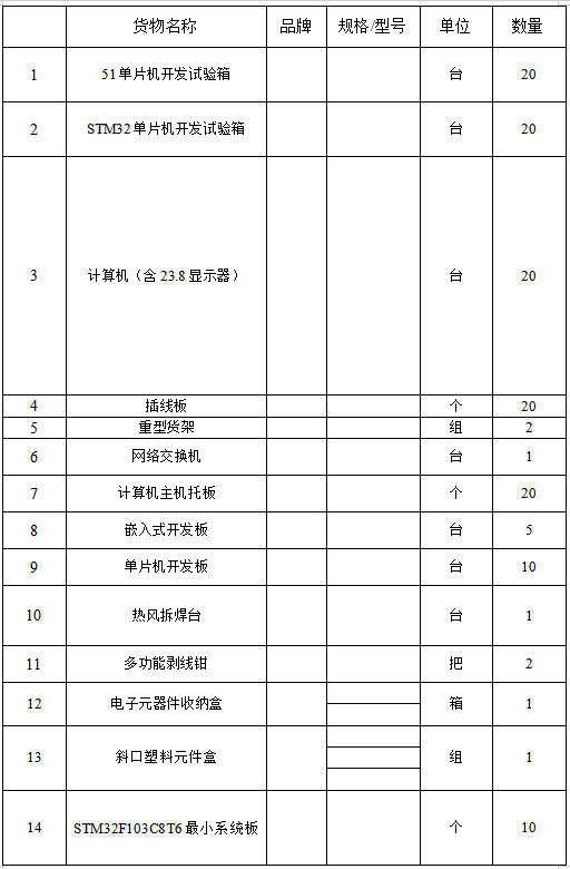 根据人才培养方案,为了满足教学需求,现对智能工程学院单片机、嵌入式、EDA实验室扩建项目进行招标。